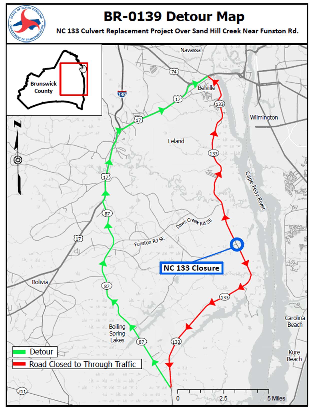 *This is a North Carolina Department of Transportation (NCDOT) notice. Brunswick County is not responsible for the accuracy of this information. For the most up-to-date information, visit the NCDOT website or contact NCDOT directly.